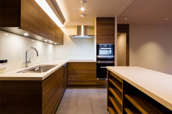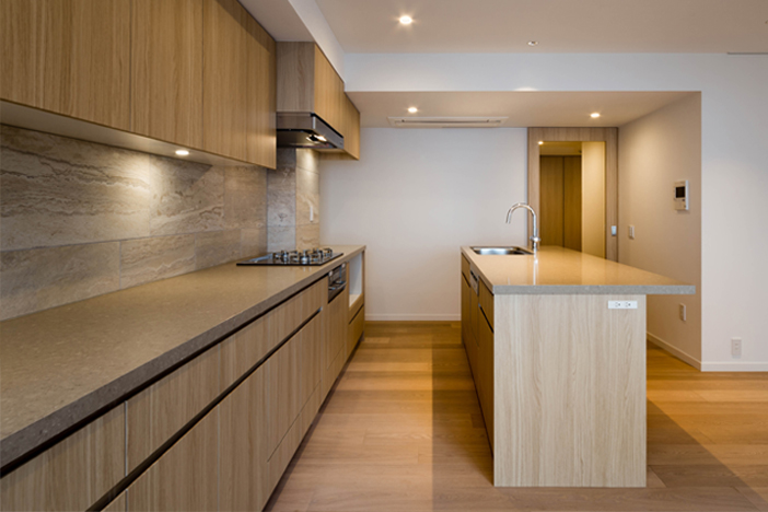 本計画は1989年竣工マンションのリノベーション計画であった。 弊社では占有部の内装、そして各住設(キッチン、洗面、収納など)をデザイン監修を受け施工致しました。 ミリ単位で調整されるディテールから間取りやカラーコーディネートのバリエーションに富んだ計画の中、住まう方の個性を表出した住空間の提供をお手伝いすることとなった。 株式会社近代建築社 平成29年3月5日発行 書籍「近代建築」vol.71 2017年3月号掲載