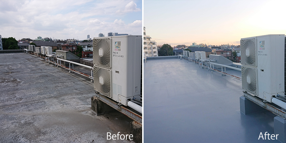 スポーツジムのある大型ビルの修繕工事 防水調査やタイル打診検査を行い より安心で価値のある建物となりました <主な施工内容> 屋上防水 漏水箇所の特定と修繕 外壁タイル貼り替え及び外壁再塗装 昇降リフト設置 一部サイン・看板変更工事