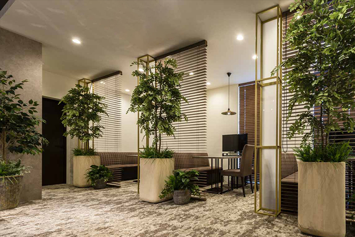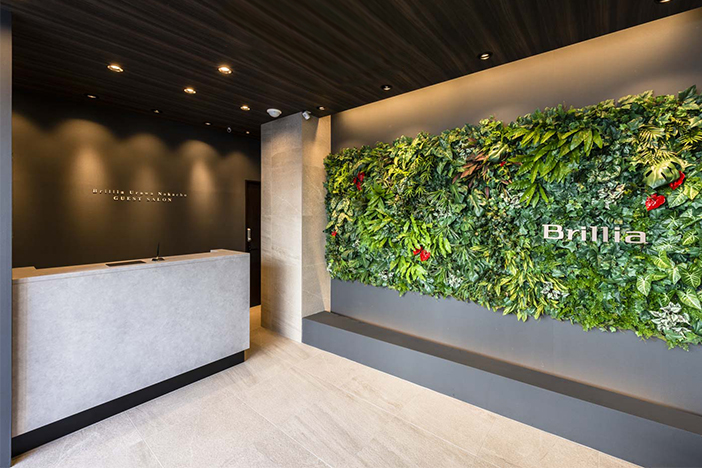 街の中で緑量あるファサードの構え、「パッシブデザイン」といった自然を取り込むアプローチで生まれるマンションを連想させるため、いわゆるナチュラルテイストでは無い緑の扱いを行いました。